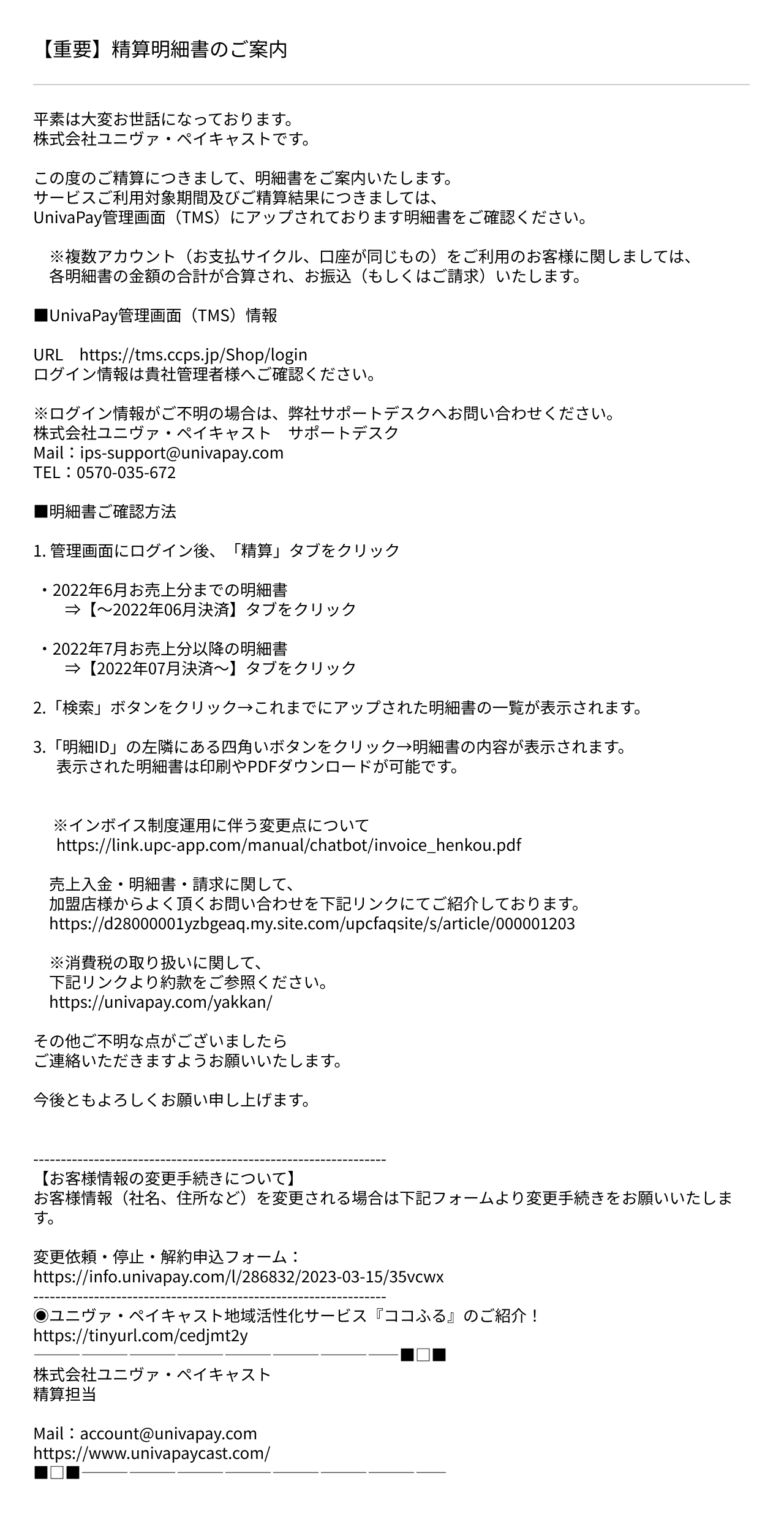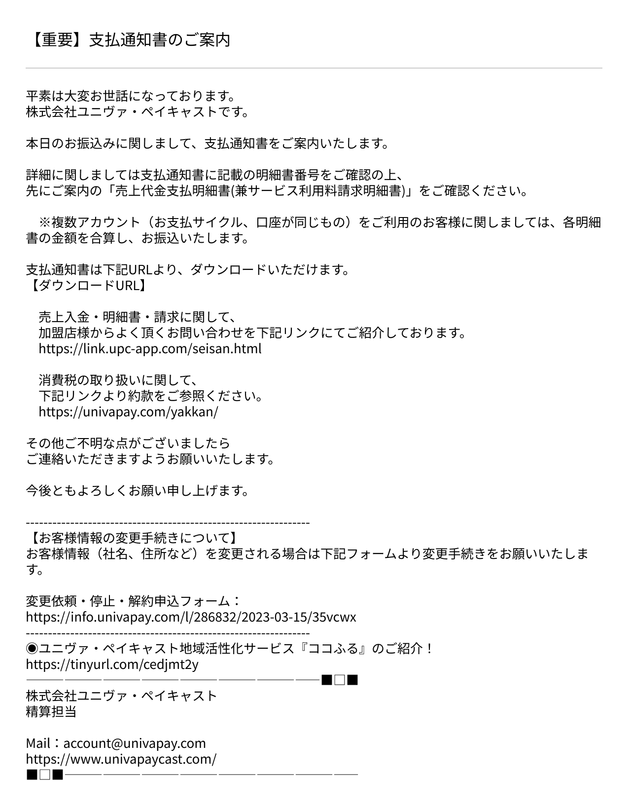 いつもUnivaPayの決済サービスをご利用いただき、誠にありがとうございます。