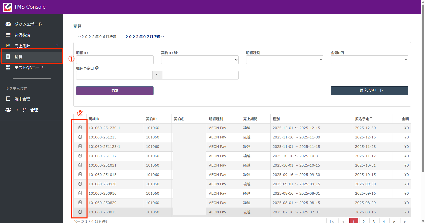 - 売上代金支払明細書(兼サービス利用料請求明細書)とは異なり、管理画面からのダウンロードは不可となっております。